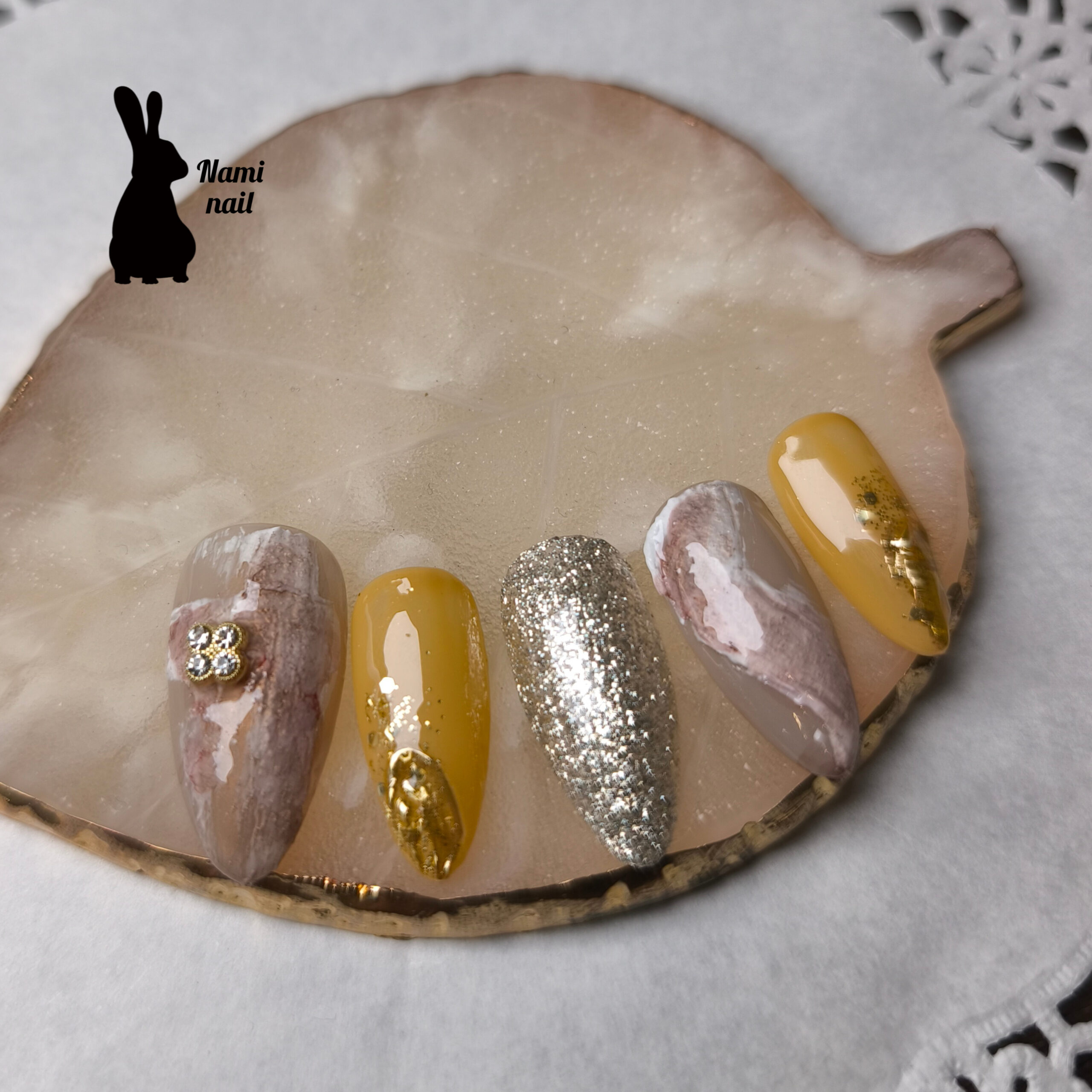 ベースのカラージェルの上に、ランダムにザっとテラコッタジェルを乗せます。